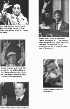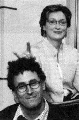 Actress Meryl Streep gives the sign of the Devil just over the head of "Angels in America" director, Mike Nichols. In 2004, the HBO series "Angels in America" was aired. It was possibly the most evil TV program ever broadcast. The director and actress were given "Golden Globe" awards, indicating how hateful Hollywood and the TV networks have become.