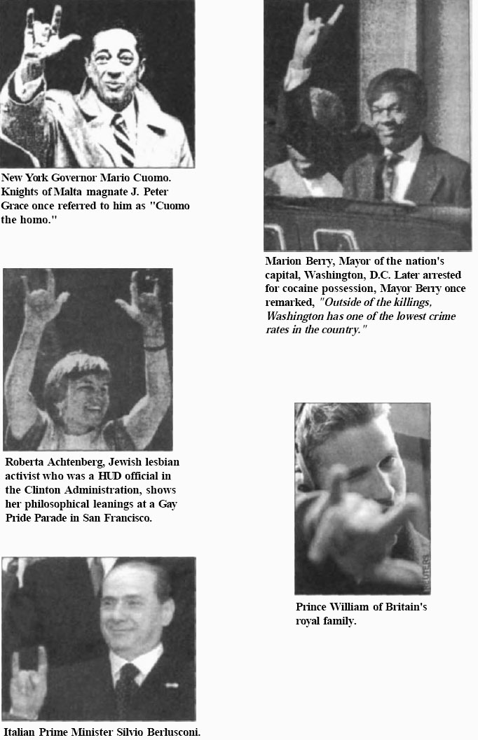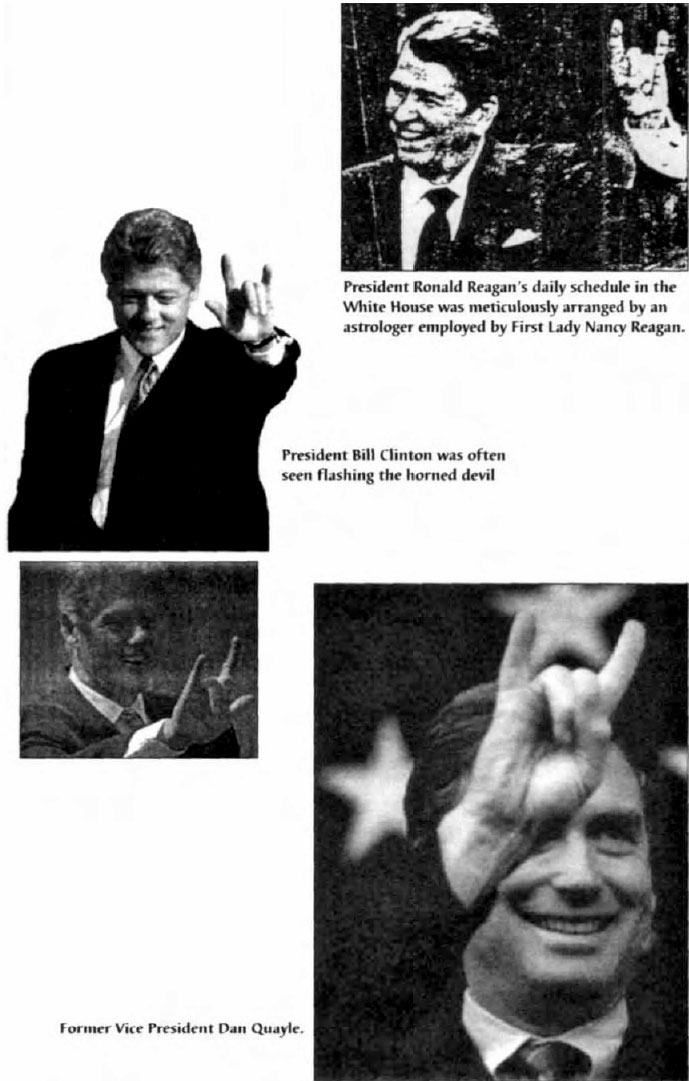 It is being flashed everywhere—on TV, in newspapers and magazines, at sporting events, and even at presidential inaugurations. I'm referring, of course, to the sign of El Diablo, the horned devil, also known as the sign of Il Cornuto and as Diabolicus. It began in the modern era with the followers of satanic cults, the members of the official Church of Satan, and heavy metal rock music bands and fans flourishing the sign of two separated fingers upward sign. The rock bands made it popular and trendy, and now it seems almost everyone is doing it.