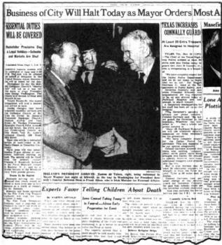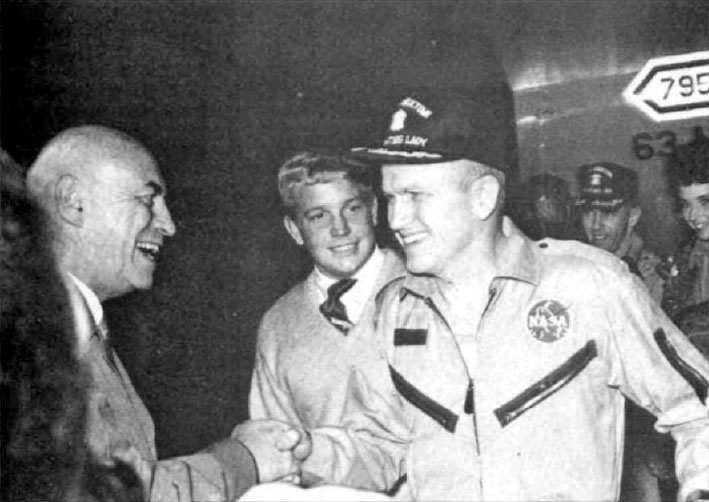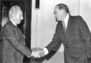 In this picture, Reagan is shown gripping with the Supreme Master Grip with a pronounced Ma-Ha-Bone Lion's Paw. Gorbachev attempts the same but Reagan won't allow the same grip. This shows that Reagan demanded (and kept) the "upper hand." As reported in The New York Times, November 25, 1963, New York City's Mayor Wagner welcomes Ireland's President Eamon de Valera to the "Big Apple." The Irish leader was at New York's Idlewild Airport on his way to Washington, D.C. for the slain President John F. Kennedy's funeral. Strangely, the smiling Mayor looks in high spirits, though most of America was in deep mourning. J. Robert Oppenheimer, scientist who oversaw development of the first nuclear bomb in Project Manhattan, receives a Masonic handshake from President Lyndon B. Johnson. Johnson earned only the 3rd degree of Master Mason.