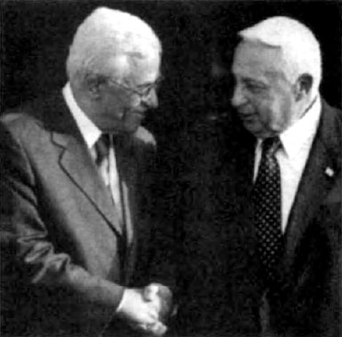 Palestinian President Mahmoud Abbas with Israeli Prime Minister Ariel Sharon. Both men are Masons.