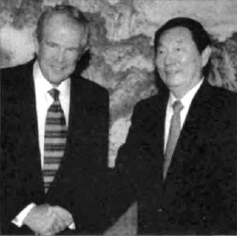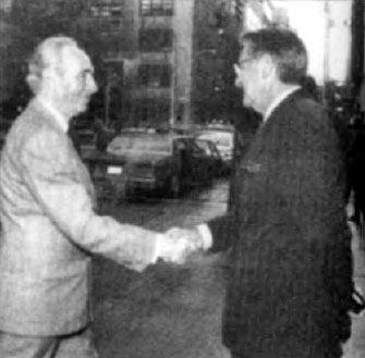 In exchange, the llluminati cartel holds exclusive rights to South Africa's mineral rich assets of diamonds, gold, and platinum. (Photo: from the book, In The Words Of Nelson Mandela, published by Carol Publishing Group, York, 1998) New York Governor George Pataki and New York State Senator Joseph Bruno meet in December 2003 with Tetsuro Higashi, president of Tokyo Electron Ltd., to announce a new $300 million research and development facility. (Newsletter of State Senator Joseph L. Bruno, December 2003, p. 1) Fidel Castro (right) in a Masonic grip with Vatican Secretary of State, Cardinal Angelo Sodano. The Cuban dictator is a lifelong Freemason and is also a member of the secret order known as the Odd Fellows.