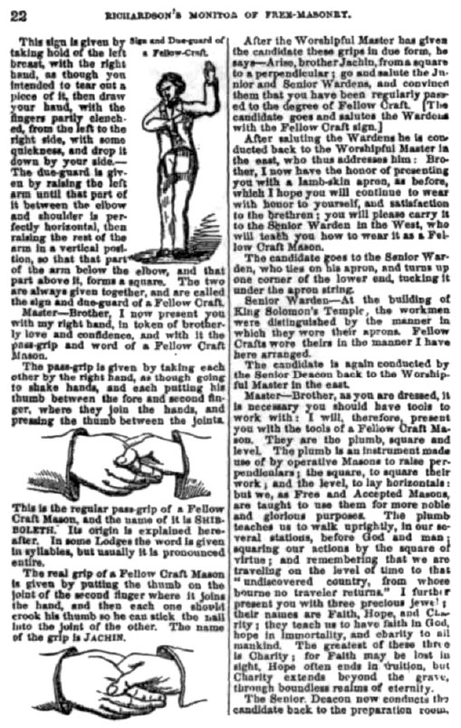 Masonic Handshakes Illustrated in Official lodge Publications Masonic handshakes and grips from Richardson's Monitor of Free-Masonry.