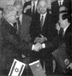 Israeli Foreign Minister David Levy (left), in Masonic grip with Red Chinese counterpart in Beijing, China in March, 1992 as a bemused official looks on. U.S. President Clinton receives Masonic grip from United Nations Secretary-General Kofi Annan at opening of the UN General Assembly. In this staged photo opportunity, aides for the two world leaders arranged the national flags so that Nicaragua's Illuminati-designed flag, which has a (male) triangle, a solar image, and all-seeing eye as its focus would be most prominently displayed.