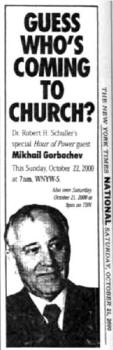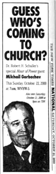 Gorbachev, an initiate of the Grand Orient Lodge, Paris, France, spoke at Schuller's church.