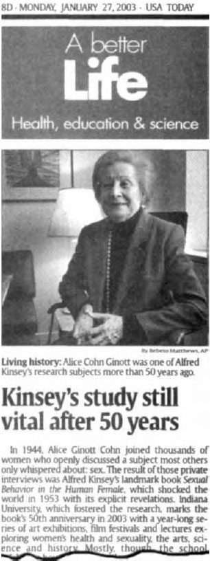 Actor Martin Short (People magazine, July 14, 1997, p. 148) Alice Cohn Ginott, a Jewish woman who participated in satanist Indiana University Professor Alfred Kinsey's sex studies. Ginott Cohn says she gave an interview to Kinsey's group.