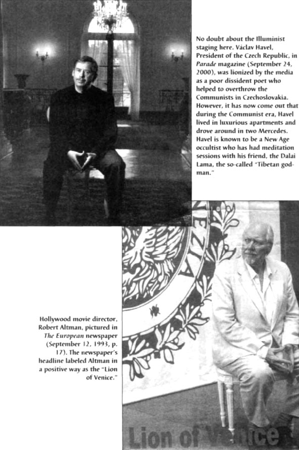 Actress Doris Day has more of a message to communicate than merely her innocent usual clean-girl image. Maybe the well-known Hollywood producer was right who, when asked about Day, quipped, "Oh yes, I've known her a long, long time. Why, I even knew Doris Day before she became a virgin!" According to "tradition," the next of kin at military funerals are given a flag folded into a triangle with exactly six stars showing. Few families of victims know that the tradition appears to be of Masonic origins. (Photo: Newsweek, January 7, 2002, p. 29) In 1990 this photo of U.S.S.R.'s KGB Chief Vladimir Kryuchkov was published in The European newspaper (December 14-16, 1990, p. 7). The caption read: "KGB head Vladimir Kryuchkov has dispelled illusions of the new Mr. Nice Guy' approach with his chilling attack on separatists."