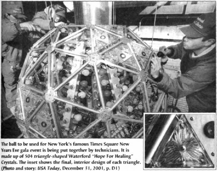 The postcard reveals the Jewishness of these original leaders of the Communist Party. All six shown, including Lenin and Trotsky, are Jews! Also observe the double triangle arrangement of the placement of the six individuals. Triangular structure at gala opening ceremony of 2002 Winter Olympics in Salt Lake City, Utah. (Photo: Newsweek, February 18, 2002) According to An Illustrated Encyclopedia of Traditional Symbols, this illustration is packed with occult and alchemical symbols. However, the triangle is the focal point. Inside the triangle (the triangle with concentric circles surrounding it) is the astrological and generative symbols of male and female combined, the Hermaphrodite.