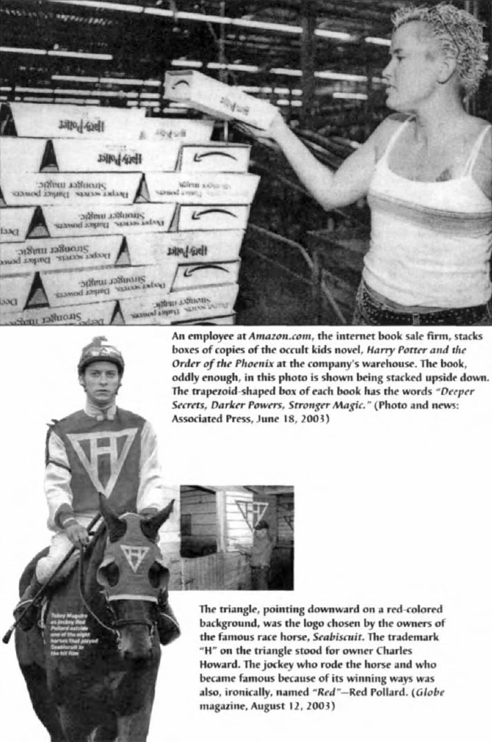 Viacom owns CBS, MTV, Disney, and many other media properties, all firmly in the Zionist camp editorially and subject-wise. (Photo: U.S. News & World Report, June 14, 2004, p. 70) This scene is set at the White House in March, 2001, with Israeli Prime Minister Ariel Sharon and President George W. Bush both presenting mirror-image descending (female, delta, or vulva) triangles. Two triangles joined together constitute a Jewish Star of David.