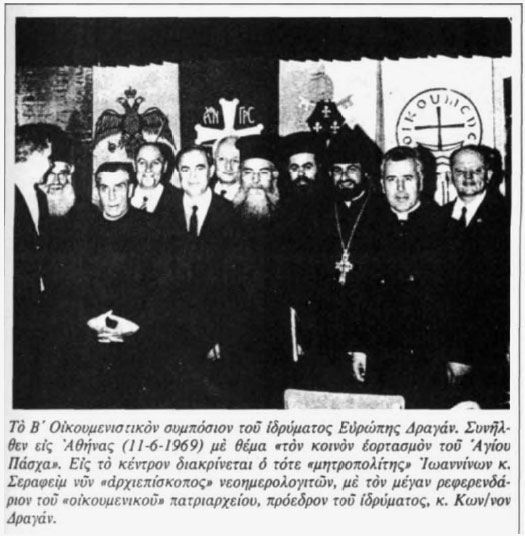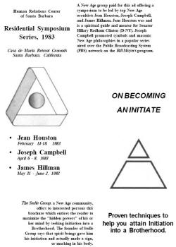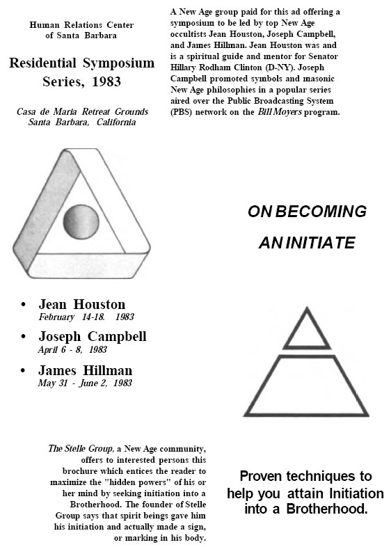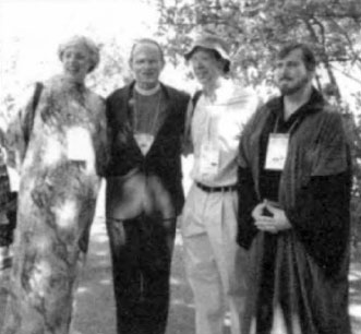 At the Parliament of the World's Religions in Chicago, a Rockefeller-funded event, an Episcopal Bishop (second from left) has fellowship with an unidentified couple and with Donald Frew, far right, a warlock (male witch) who oversees 70 covens.