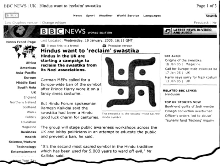 BBC News on-line recently reported that Hindus want to reclaim the swastika, which their gurus claim has been a Hindu good luck sign for centuries.