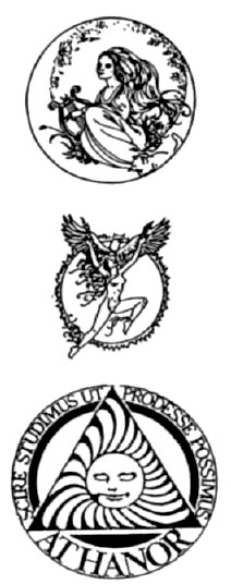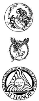 Logo for a publisher of many occult and esoteric books. Two circle images used in magical rites.