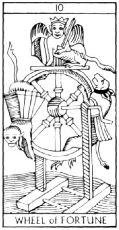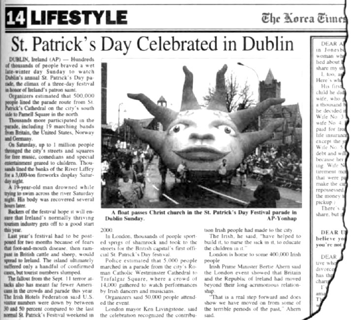 "Wheel of Fortune" tarot card, used by witches and seers for predicting one's future. The inner circle of the Illuminati elite are sometimes referred to as the "Wheel." This float honoring the sun (with six rays) was a part of the St. Patrick's Day Festival parade in Dublin, Ireland. (Photo and article from The Korea Times newspaper, March 19, 2002, p. 14)