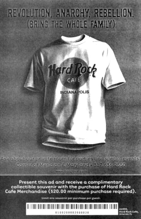 General plan of Cabalistic Jewish magic reveals a diamond focal point and many concentric circles. (From Encyclopedia of the Occult) A T-shirt offered by a vendor of gift items from the Hard Rock Cafe restaurant chain. Note the sun symbol.