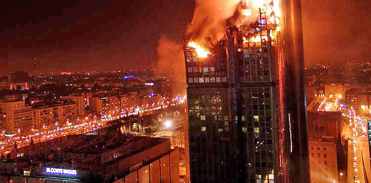 February 12, the Windsor building in Madrid, Spain caught fire. The