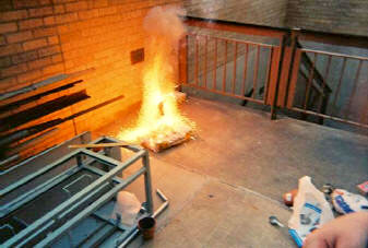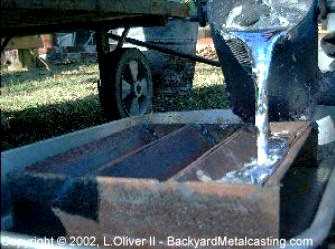 Again, we had fire and smoke, and again, the hydrocarbons floated on top as they burned. We poured out the aluminum and all three of us observed that it appeared silvery, not orange! We took photos and videos, so we will have the recorded evidence as these are processed. Of course, we saw a few burning embers, but this did not alter the silvery appearance of the flowing, falling aluminum.