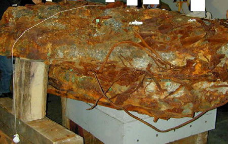 The photographs below by Frank Silecchia show chunks of the hot metal being removed from the North Tower rubble on September 27, 2001 (according to photographer’s aid). Notice the color of the lower portion of the extracted metal—this tells us much about the temperature of the metal and provides important clues regarding its composition, as we shall see.