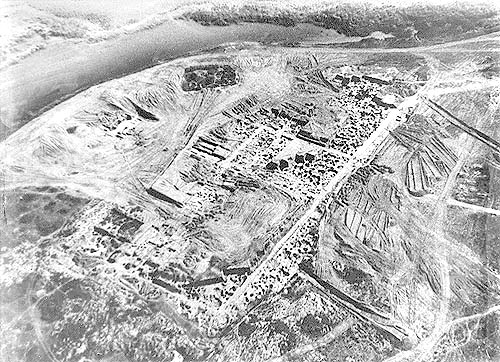 N ow Biela Viezha — the White Castle — was the Slavonic name for Sarkel, the famed Khazar fortress on the Don; but it should be noted that the destruction of Itil, the capital, is nowhere mentioned in the Russian Chronicle — a point to which we shall return. The Chronicle goes on to relate that Svyatoslav “also conquered the Yasians and the Karugians” [Ossetians and Chirkassians], defeated the Danube Bulgars, was defeated by the Byzantincs, and on his way back to Kiev was murdered by a horde of Pechenegs. “They cut off his head, and made a cup out of his skull, overlayed it with gold, and drank from it.” Khazar fortress at Sarkel (Belaya Vyezha, Russia). Aerial photo from excavations conducted by M. I. Artamanov during the 1930's.