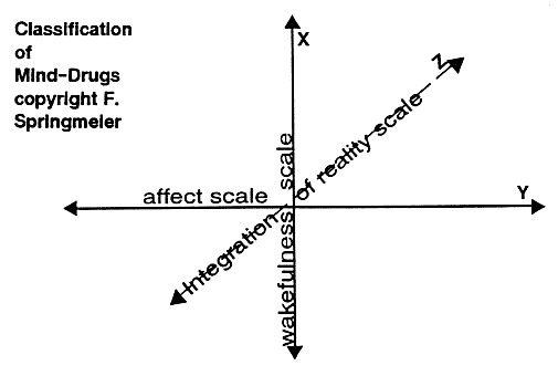 When this author studied differential equations, and higher mathematical it became clear that everything can be reduced to a mathematical explanation. Sometimes a mathematical notation is easier and clearer, than other explanations. This author suggests that drugs that affect the mind could be classified on three scales: