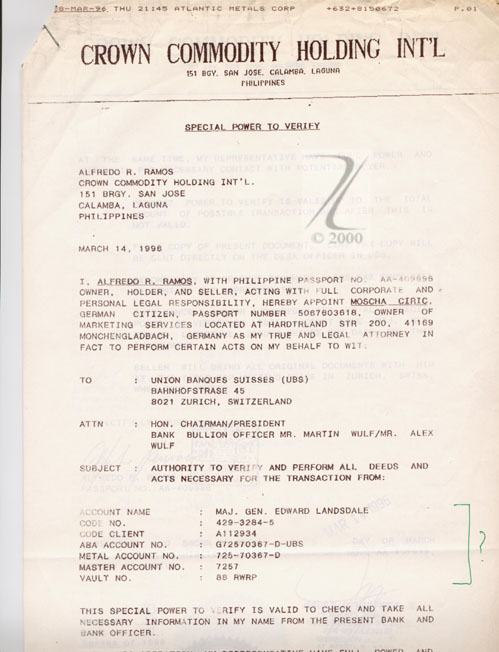 Document listing General Edward Lansdale's gold accounts at UBS, Zurich