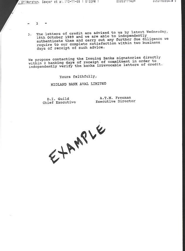 12th October 1989 letter to Jardine, Emett & Chandler. The fax heading