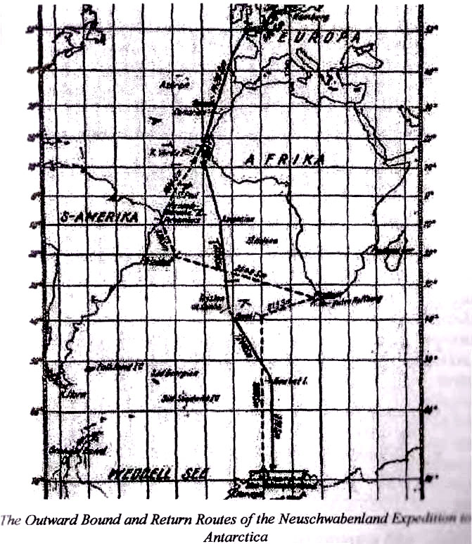 B. The Neuschwabenland Expedition In late 1938 the Germans undertook an expedition to Antarctica, specially outfitting a seaplane carrier, the Schwabenland for the purpose, and placing it under the command of one of Germany's most experienced polar navigators. At a cost of some millions of Reichsmarks, the expedition was under the personal direction and mentorship of none other than Luftwaffe chief, Reichsmarschall Hermann Goring,18 which leaves one to wonder what possible purpose Goring would have in sponsoring such an expedition. That it was military in nature seems beyond doubt, for the Nazis spared no effort to outfit the expedition as thoroughly as possible. New canning techniques were invented for the food needed on the voyage from and back to Germany, and new clothing was designed, including allegedly a "grey almost bullet proof seamless and metallic appearing suit...made of whale skin." 19 The inspiration for the expedition may have had hidden occult motivations as well, for the occult Thulegesellschaft or Thule Society subscribed to a Nordic Atlantis hidden beneath the polar ice, whence sprang, so the legend goes, the Germanic race.20 In any case, small teams of specially selected biologists and other scientists accompanied the expedition to run laboratory experiments on board the refurbished Schwabenland.21 18 It is also to be noted that apparently the then Deputy Fuhrer and Party chief, Rudolf Hess, was also privy to whatever secret purpose and findings this expedition had. Some people allege that this was in part a hidden motivation tor Hess's inexplicable flight to Great Britain in 1941 to conduct secret "peace" negotiations with representatives of the British Fascist movement. 19 Ibid., p. 3, citing Christoph Friedrich, Secret Nazi Polar Expeditions (Toronto: Samisdat Publishers, No date), p. 21. 20 This fact would also place the expedition within the brief of the SS Ahnenerbedienst. 21 The expedition is the subject of a fascinating novel by William Dietrich called Ice Reich (Time Warner, 1998). Dietrich's thesis is that the Germans were after unknown microbial and bacteriological life forms that were frozen in the ice and that could be transformed into biological weapons. The Germans chose the region of Antarctica known as Queen Maud Land, an area of the continent claimed by Denmark. In blatant disregard for international law, the Nazis overflew the entire area, dropping thousands of little swastika flags on the region with little spikes to embed them in the ice, and claimed it for Germany, renaming the region Neuschwabenland. But they did more than just fly and drop flags. The German pilots extensively photographed the region, and reported mountain ranges in excess of 12,000 feet altitude, rocky crags projecting above the fields of ice. But most amazingly, they allegedly found ice-free ponds, heated geothermally, in which grew various unknown species of algae. They also discovered the southern tip of the fault line that runs from New Zealand, through Neuschwabenland, and up the Atlantic Ocean, the famous Atlantic "trench". The Germans concluded that such features might indicate the presence of rocky caverns on the continent, heated geothermally, the perfect place for a hidden base in the world's most isolated, desolate, and inaccessible wilderness.22 Most intriguingly, the scientists aboard the Schwabenland were not idle in analyzing the potential foodstuffs of the continent: