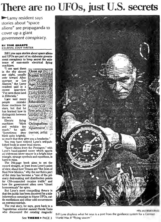 January 6, 1994 Albuquerque Journal North Article Featuring William Lyne and His Mysterious Nazi Compass So with Landig's fantastic allegations, we come full circle back to the exotic energy sources, the technologies, the occult, and the SS research being conducted by Nazi Germany. Therefore, before proceeding to examine more seriously substantiated instances of Nazi survival in the next chapter, it would be worthwhile to summarize the accumulated allegations and evidences of this and previous chapters: