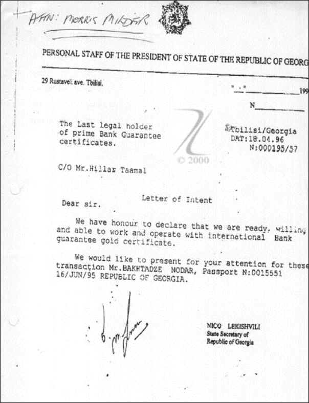 Letter from the Personal Office of Eduard Shevardnadze, President