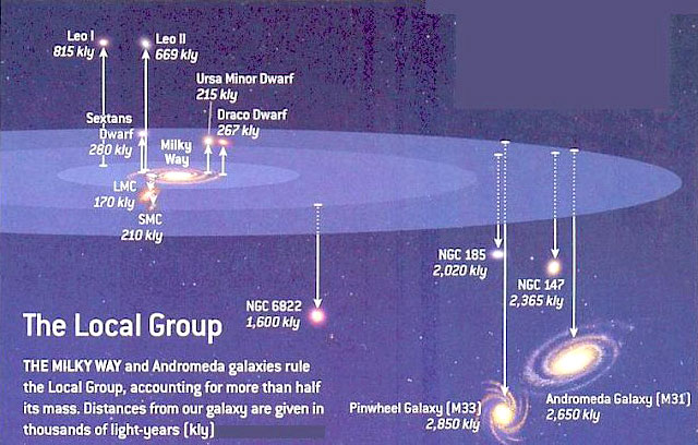 The Local Group of galaxies extends some 4 million ly (light years) across.