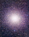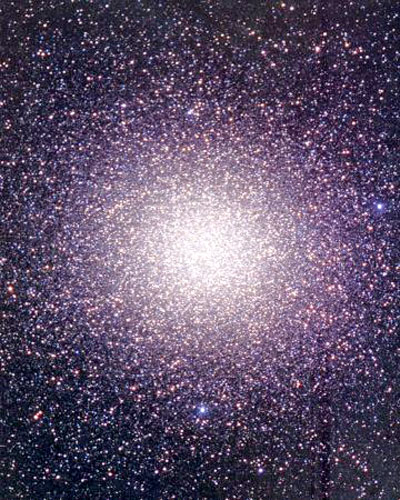 Those in the core of Omega Centauri are so densely packed that occasionally one of them will actually collide with another one. Even in the dense center of Omega Centauri, stellar collisions will be infrequent. But the cluster is so old that many thousands of collisions must have occurred. When stars collide head-on, they probably just merge together and make one bigger star.