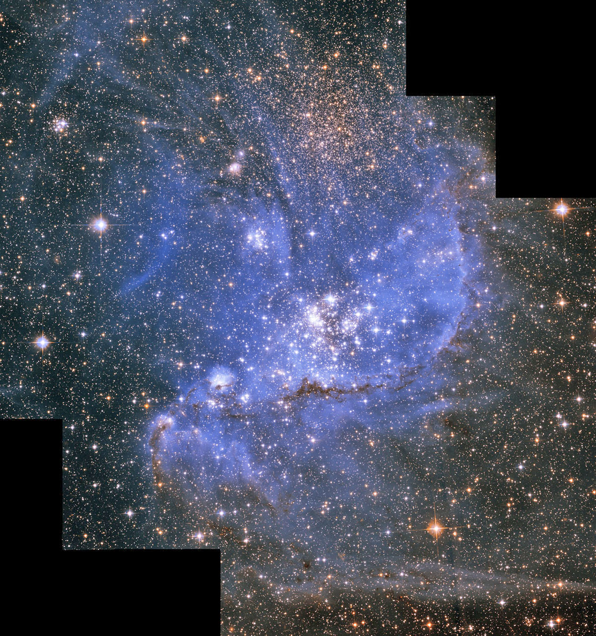 The stars in Omega Centauri are all very old, about 12 billion years. They are packed so densely in the cluster's core that it is difficult for ground-based telescopes to make out individual stars.