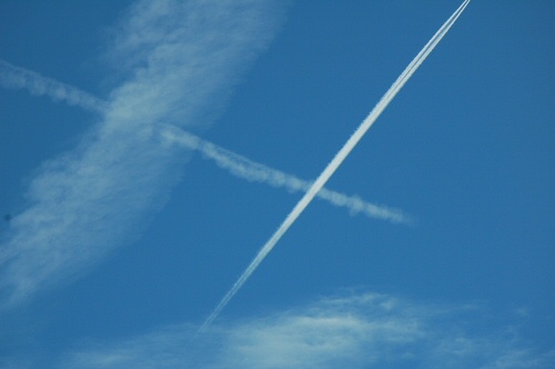 Twelve minutes after the trail was laid down, at 1:29pm, the cross flight appears.