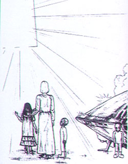 Two scenes from Betty Andreasson's meeting with