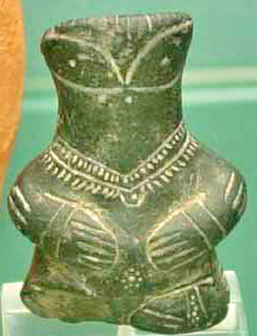 The Ubaid culture succeeded the Halaf at the end of the 6th millenium BCE in southern Iraq, then spread throughout Mesopotamia. Ubaid culture is known for painted pottery; large houses of tripartite plan for extended families; and lizard-headed figurines of both male and female gender. Figurines such as the above examples are typical.