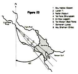 From all of these names, and the layout of the cities, Zecharia Sitchin concluded that, before the Flood, there had been a “triangular landing corridor” with a “spaceport” at Sippar and a “mission control” at Nippur. Does this claim survive close scrutiny? It is difficult in retrospect for us to assess the suitability of this area for shuttle-type landings, since the debris from the Flood would have totally obscured the original landscape.