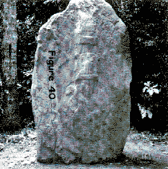 This is a significant clue, not to be dismissed as decorative headgear or fancifully linked to astronauts, but highly indicative of a mining helmet, indeed, another Olmec carving at La Venta, supports this conclusion. Figure 40 shows a 9-feet high stone slab known as the King’s Stele.