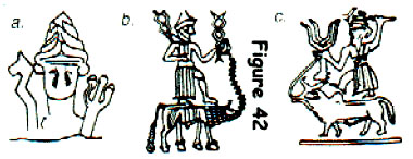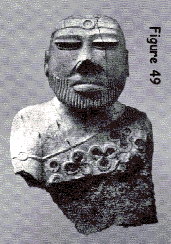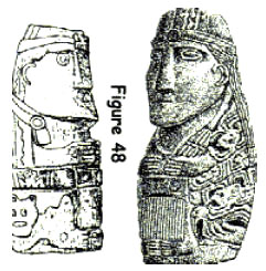 The hats and chiseled facial features of the Easter Island statues also bear a similarity to statues found on the South American mainland. Figure 48 shows two statues from Aija in Peru, which in turn resemble a depiction of an Indo-European ruler from the Indus Valley (Figure 49).
