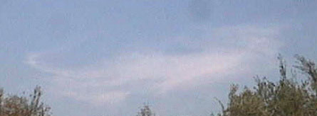 Fast forward to June 25, 2004. In the photos displayed below, I think we might be looking at a dolphin (or shark) shaped Sylph devouring a chemtrail low on the horizon to the west of my location. I’ve also included a couple of shots taken to the north at the same time which clearly show chemtrails, but also possibly a Sylph engulfing and devouring those recently laid chemtrail lines. I’m not sure, but it looks that way. You can decide for yourself.]