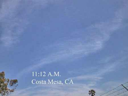 Today was a humdinger of an attempt by the treasonous spew boys to create a total chemtrail ’whiteout’ here in southern California. Happily, they couldn’t pull it off - thanks to the Sylphs. It’s been quite a while since I’ve seen so many chemtrails being laid down in this area-one right after another. There were so many chemtrails being laid down so rapidly in the morning that I thought they were going to succeed, but eventually the Sylphs arrived in sufficient numbers to turn the tide and transmute that noxious chemtrail soup into normal clouds of water vapor. Finally, in the fading light of dusk, it was obvious that the Sylphs had won the day. It was amazing to see. All told, I took 92 digital pictures, every one of them a testimonial to the ongoing chemtrail genocide agenda and the betrayal of its own citizens by a treacherous government under the lock down control of global corporate Satanists.