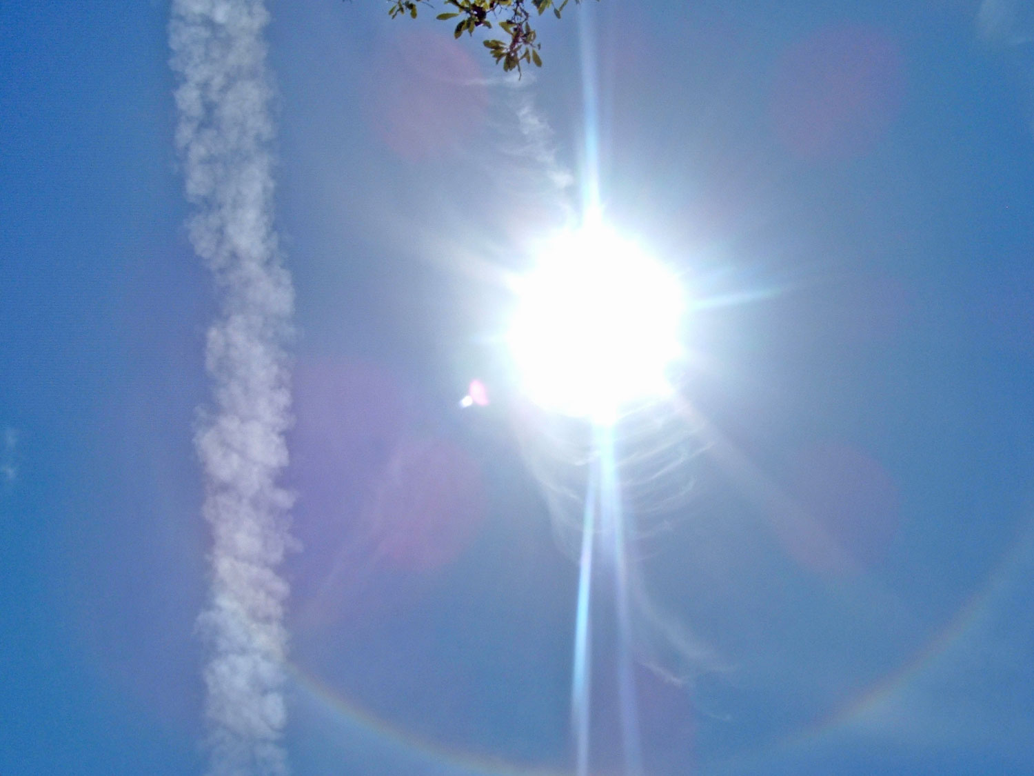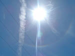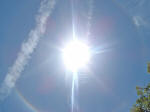 On the day of May 13th, which happens to be my birthday, I made an extra special HHG to be placed in the wetlands of Bolsa Chica. I got up early that morning to a very overcast day and grabbed my boots and shovel. After this was done, I went home and made some more orgonite. A few hours later I went outside to see the battle taking place and grabbed my camera. I took three pictures that are similar to yours but I happened to look at the sun and notice a beautiful rainbow around it - never seen anything so beautiful in all my 42 years. It was the best present I could have ever been given.