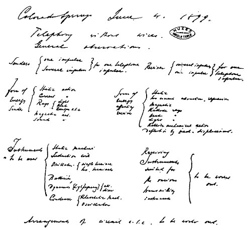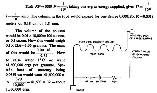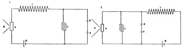 The general idea is to provide a path for the passage of a current such that it will diminish in resistance when the current passes and also such that it will be of as minute a mass as possible. The specific heat of the material forming the path for the current should also be as small as possible. The best way I have so far found is to make a mark of the required thickness with a carbonstick so as to connect two terminals through a conductor of high resistance so deposited.