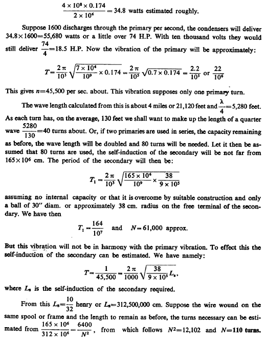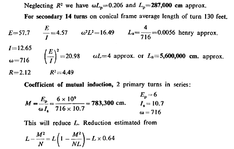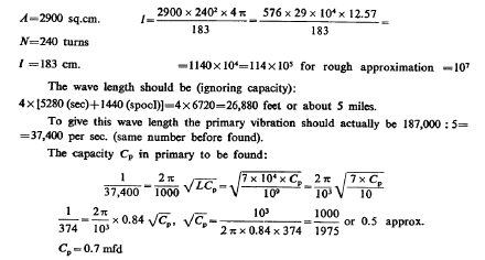 In addition to the wire already on hand this would cost about $ 250 but with 80 turns only $ 100 will be necessary. To keep the vibration of the secondary the same,-the capacity on the free terminal will have to be increased. The capacity necessary will be C and we have: