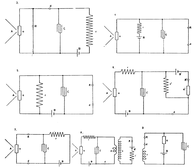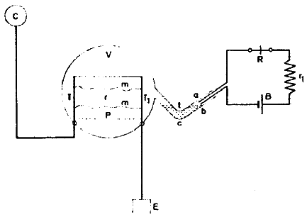 The connection of the receiver is to be as in experiments in New York: If necessary the resistance 7?j will be used to strain the tube exactly just to point of breaking down. It is very important as in all sensitive devices so far used that the dielectric is strained exactly to the breaking point.
