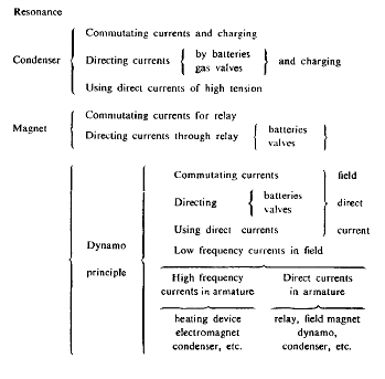 Experiments have shown that a great degree of safety is reached with two circuits. I think with three it is almost impossible to disturb the receiver when the vibrations have no common harmonics very near to the fundamental tones. Several arrangements experimented with are illustrated below. These are to be followed up.