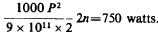 in watts, P' the pressure of secondary (average as defined) and p1