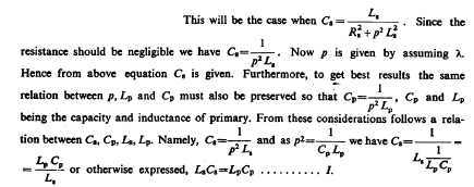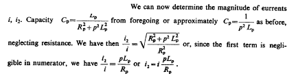 Presently then all the quantities are known for determining the constants of circuit Lp Cp from two equations