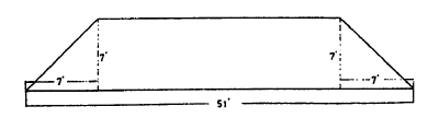 On the base it was about 51 feet and the sides were inclined at an angle of 45°. The sides were formed of light lattice work notched for the reception of the wires. The first turn of the secondary began some distance from the ground so that the average turn was smaller than it ought to have been, judging from dimensions, that is nearly 145 feet.