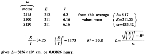 Speed of generator on station was taken by Mr. L. and on motor in exp. station by myself. The readings on generator were more liable to be underestimated. General results show that high values obtained on generator agree well with values obtained on motor. The latter can go a little faster without load. This 1 have observed with such motors before.
