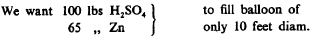 From older notes: Consider generation of hydrogen for balloons in the ordinary way:
