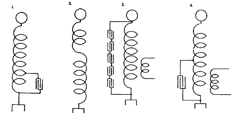 Now as to obtaining the required pressure by a resonant rise there are again two ways: either to place a secondary in loose connection to a primary thereby enabling the free vibration of the secondary to assert itself, or using a secondary in intimate connection with the primary and then raising the pressure by an additional coil — extra coil — or inductance not in inductive relation to the primary. The latter method I have found preferable when a very high e.m.f. is desired.