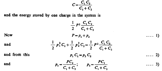Consider the following case: A condenser is connected in series with another to a generator of high tension. A circuit making and breaking device is arranged in a bridge between the condensers as illustrated in diagram. When the circuit is closed through this device the condenser included in the circuit of the generator is charged to the full potential, but when the device breaks the current path, the charge is distributed over the two condensers.